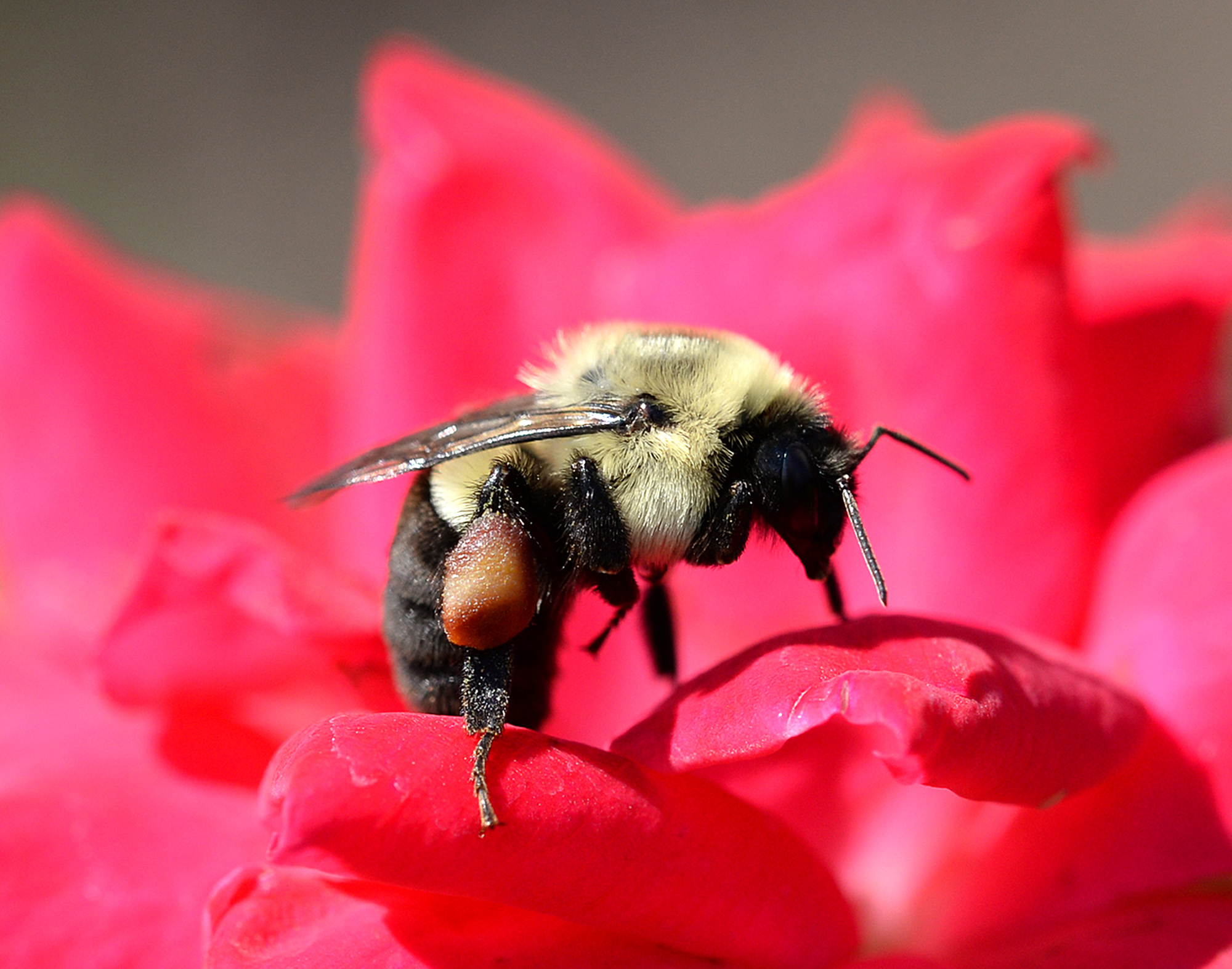 A bee feeds on a flower in Panama City Beach on Monday.