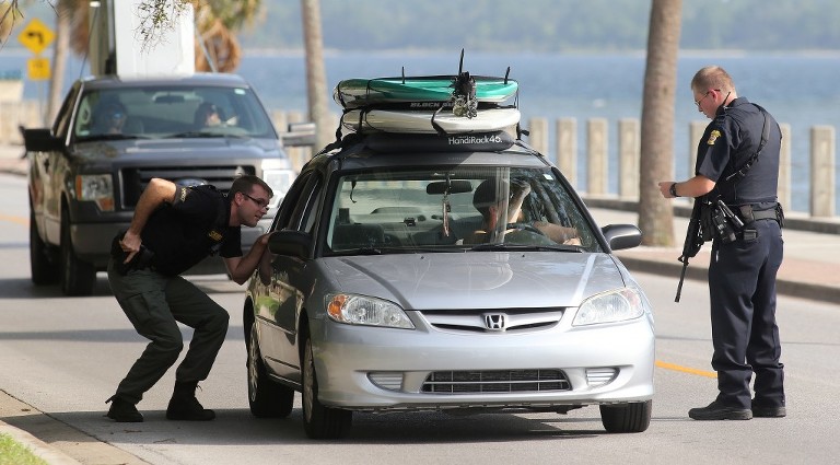Authorities stop vehicles along Beach Drive in Panama City after a Florida Fish and Wildlife Conservation Commission officer was shot. (Panama City Photographer | Andrew Wardlow)